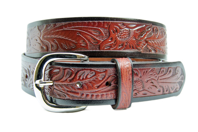Leather 3 Shade Belt – Floral Embossed – Removeable Buckle