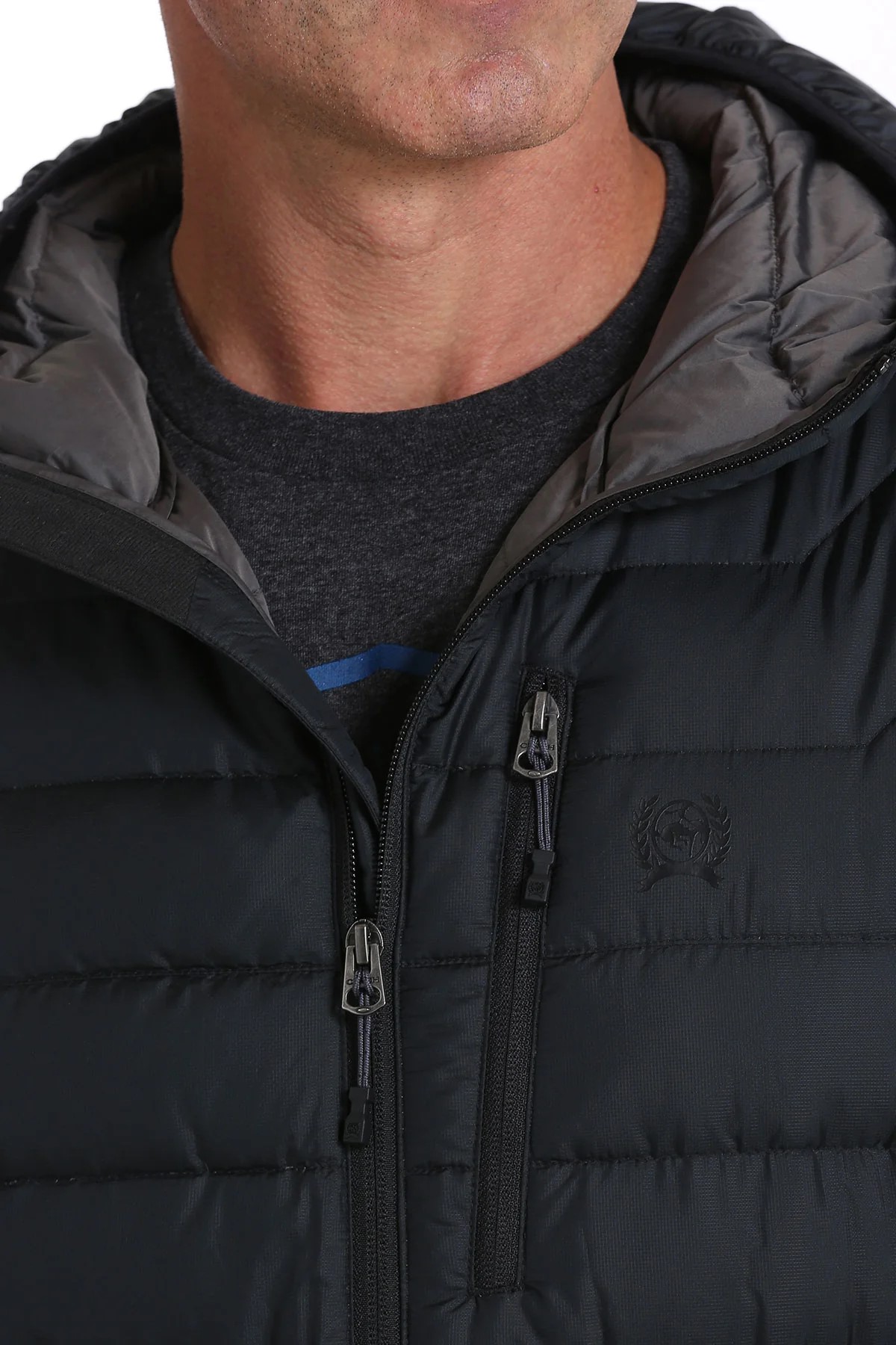 Quilted jacket with a DWR finish, waterproof membrane, hand pockets with zipper closure and featured logo.