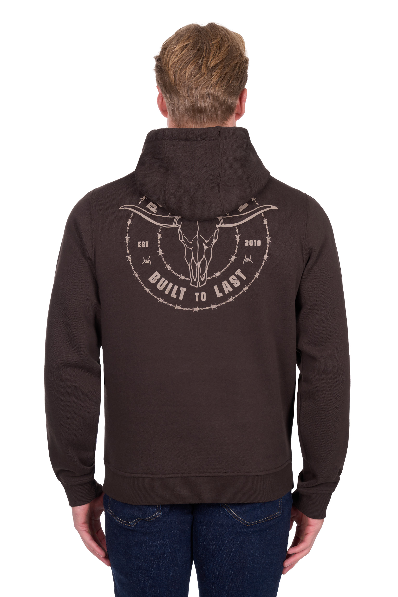 Heavyweight brushed fleece pullover hoodie. Contrast hood lining, front pockets. Logo on back