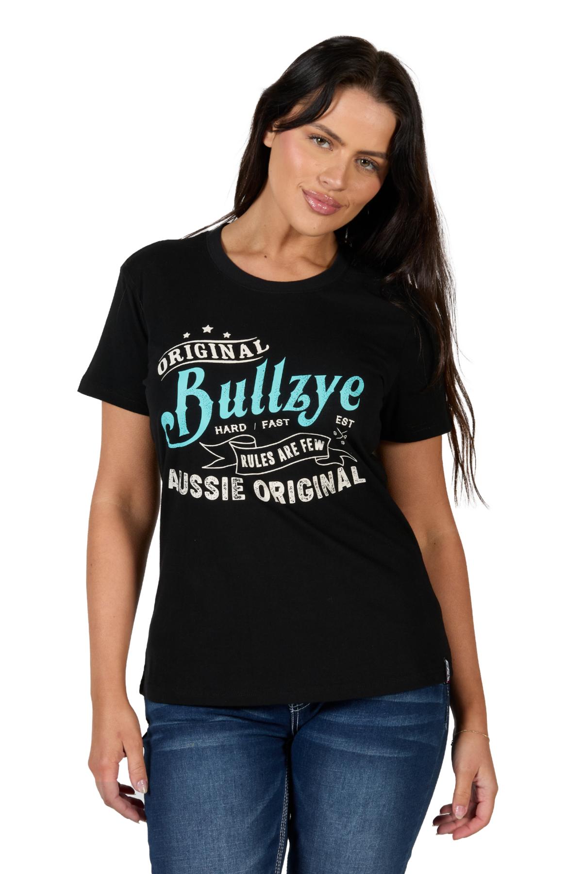 Classic tee shape, Large front feature Bullzye print, Bullzye back neck print, Rib neck band, Logo hem label
